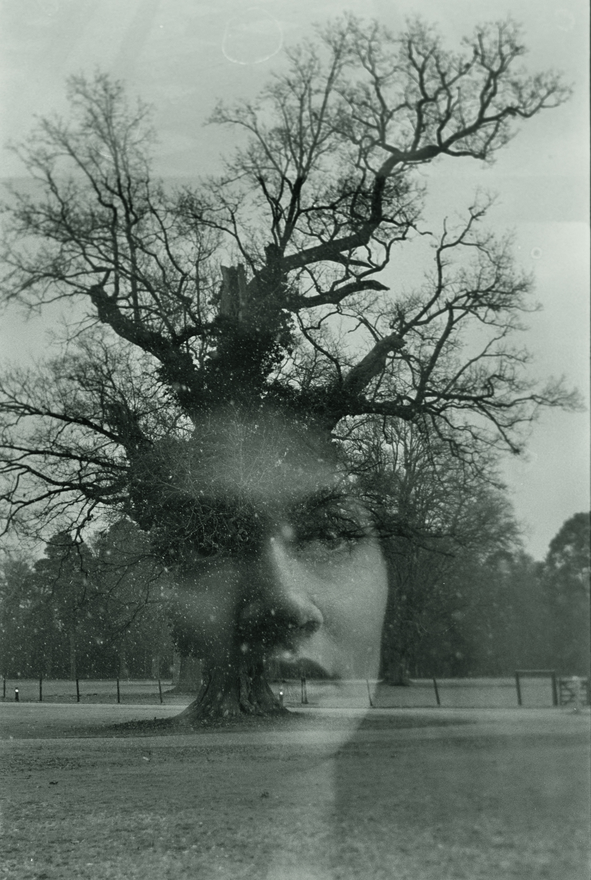 Winter, Within is a series of analogue double exposures combining portraits with winter landscapes. Shot on a Nikon F2 using Ilford FP4 black and white film, my work embraces in-camera experimentation and the uncertainty of the analogue process.